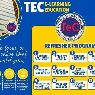 TEC INSTITUTE OF LEARNING is the Philippines’s premier private institute of learning that provides the highest quality of academic and career programs to our local and international students in areas of highest need.